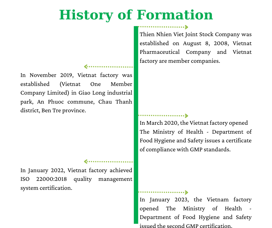Thien Nhien Viet Joint Stock Company was established on August 8, 2008, Vietnat Pharmaceutical Company is a member company. Over 16 years of establishment and development, Vietnat today has become a reliable partner and distributor in the field of Pharmaceuticals.
