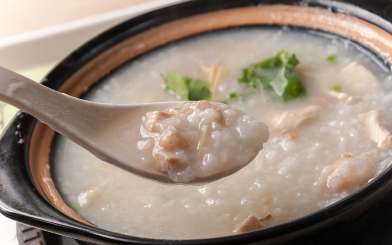 Cháo gà nấm hương là một món ăn bổ dưỡng, giúp hỗ trợ làm ấm cơ thể và tăng cường hệ miễn dịch. Đặc biệt thịt gà chứa nhiều protein, giúp cơ thể phục hồi nhanh chóng, trong khi nấm hương giàu chất chống viêm và kháng khuẩn, giúp làm dịu cổ họng, hỗ trợ tiêu đờm. Đặc biệt, cháo mềm, dễ tiêu hóa, thích hợp cho những người bị ho, đau họng, mệt mỏi.