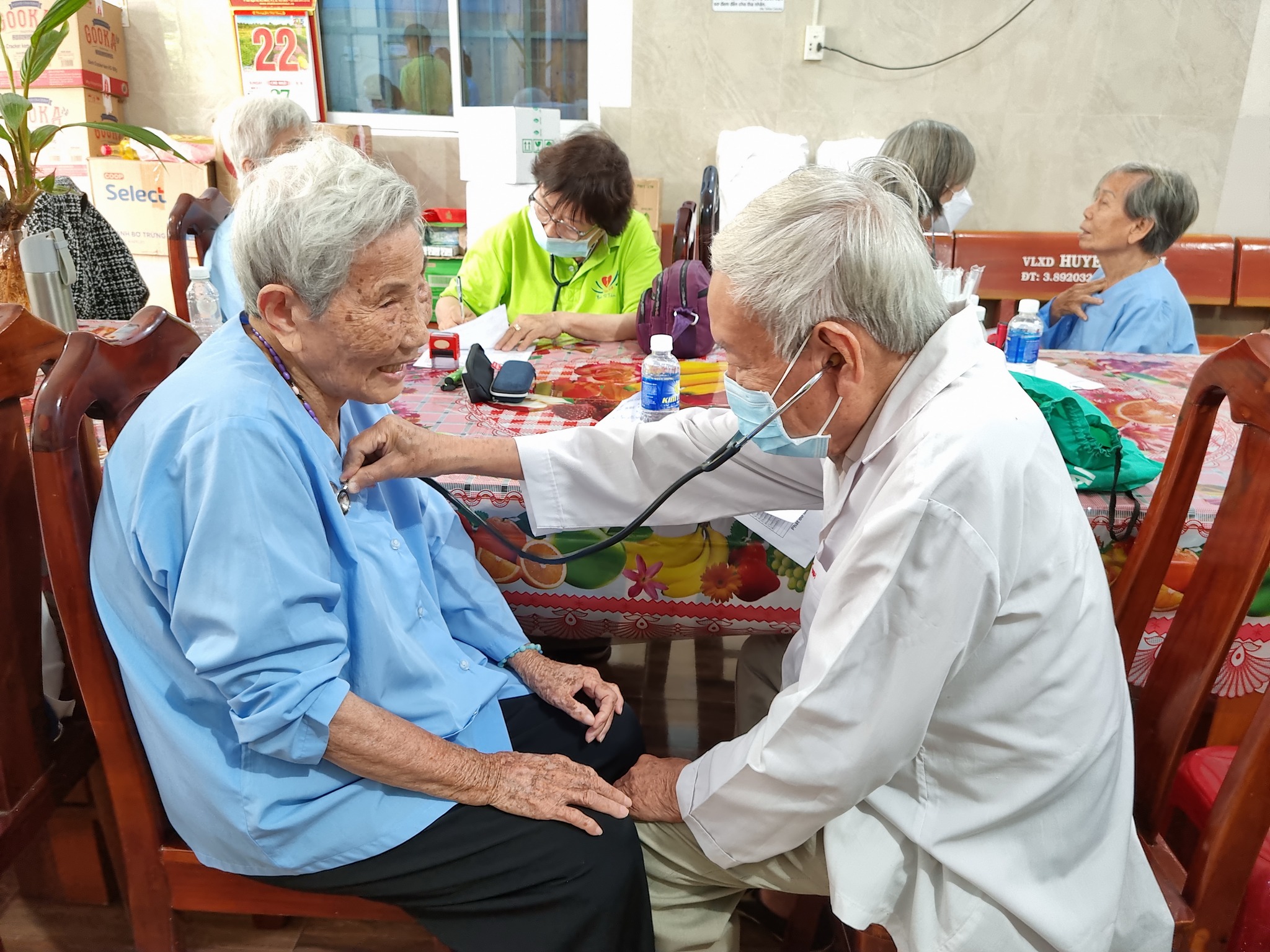 - Đội ngũ Bác sĩ Tâm Việt đã tận tình thăm khám tổng quát, tư vấn sức khỏe và phát thuốc miễn phí. Việc này giúp các cụ bà được theo dõi sức khỏe kịp thời, đặc biệt với những bệnh lý tuổi già.